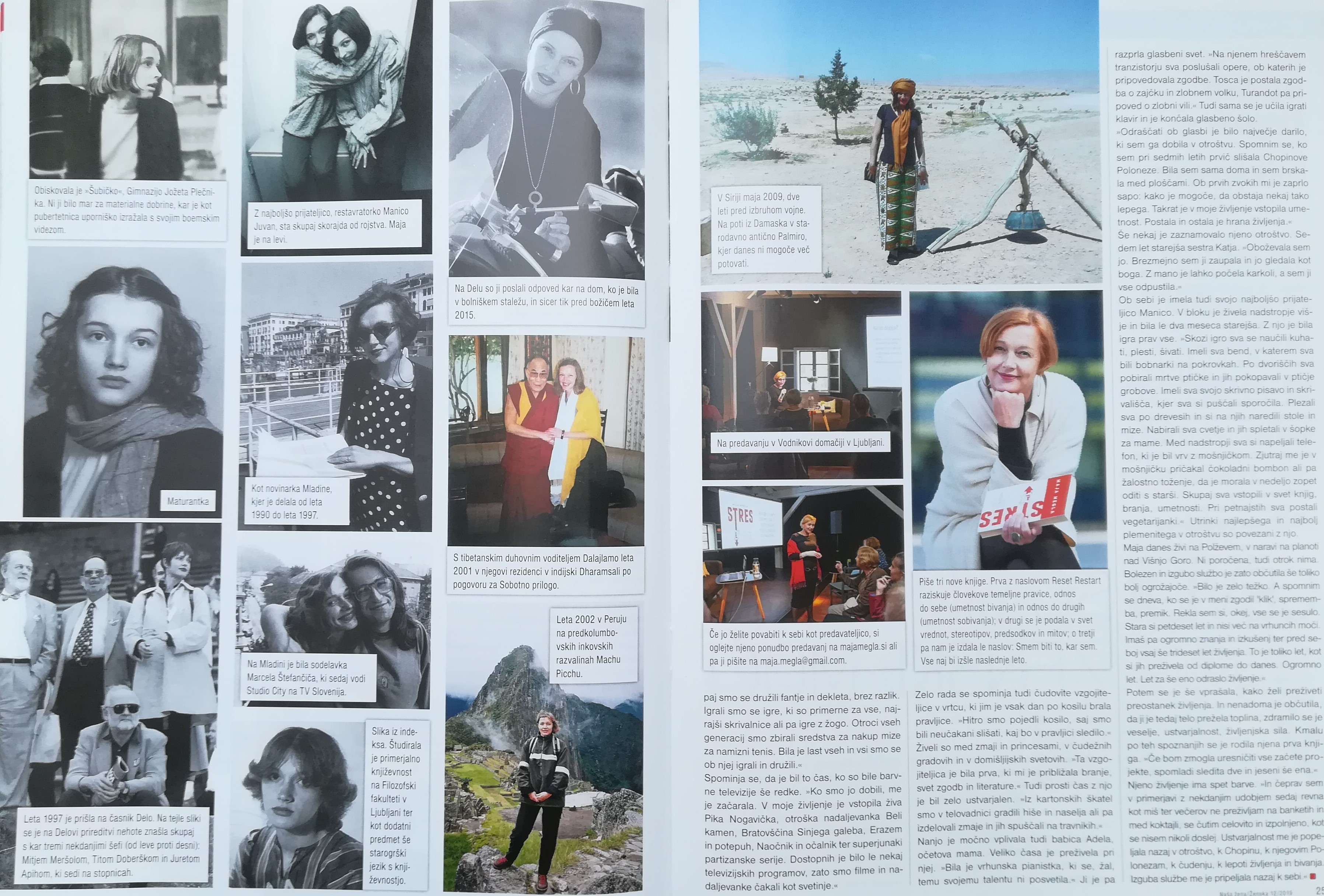 »In čeprav sem v primerjavi z nekdanjim udobjem sedaj revna kot miš ter večerov ne preživljam na banketih in ob koktajlih, se čutim celovito in izpolnjeno, kot se nisem nikoli doslej. Ustvarjalnost me je popeljala nazaj v otroštvo, k Chopinu, k njegovim Polonezam, k čudenju, k lepoti življenja in bivanja. Izguba službe me je pripeljala nazaj k sebi.« Iz članka v decembrski številki revije Naša žena.